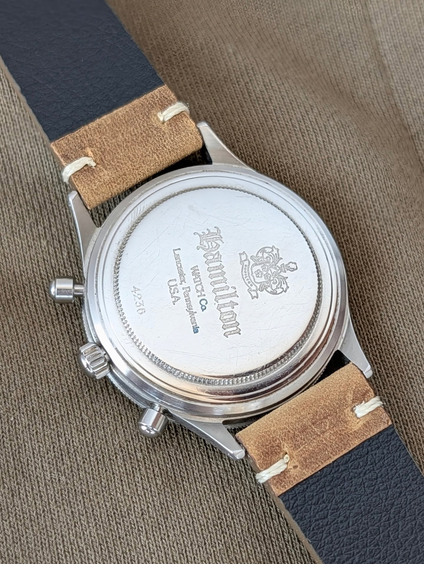 Hamilton Lancaster Chronograph, cronografo neo vintage automatico con data, prodotto tra la fine degli anni ’80 e l’inizio degli anni ’90, di ispirazione militare, spesso associato alla linea khaki field ⌚