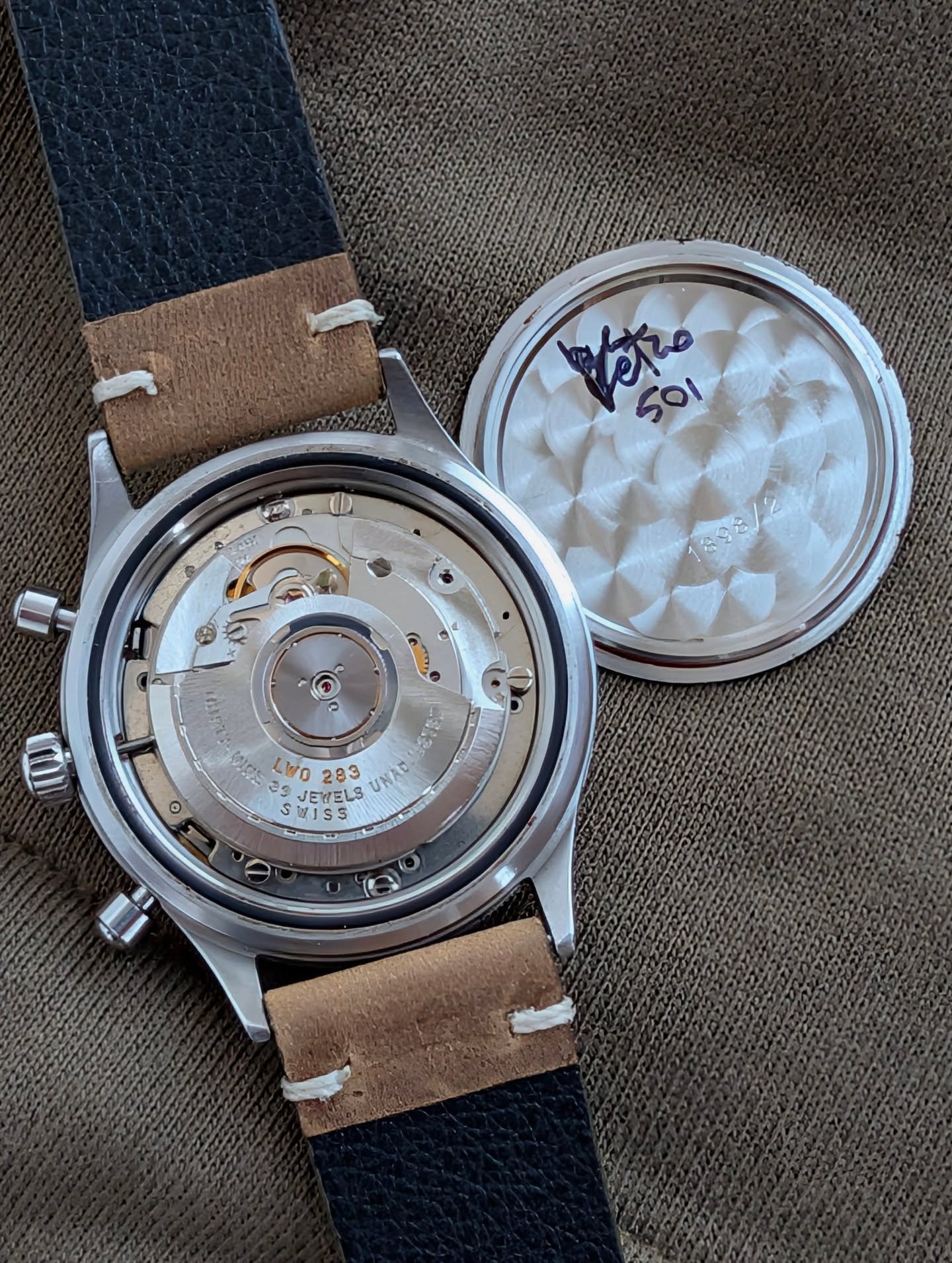 È animato dal calibro Lemania LWO 283, un movimento svizzero di alta qualità con 40 jewels